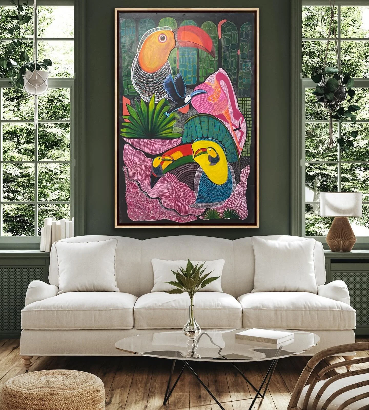 In Toucan Paradise, I explore the emotional architecture of tropical memory—an inner landscape shaped as much by grief and resilience as by color and life. Set within an imagined jungle where every leaf listens and every drop of rain remembers, two toucans stand quietly amid the lush cacophony of flora and form. They are not simply birds; they are witnesses—keepers of stories, migration, and metamorphosis.